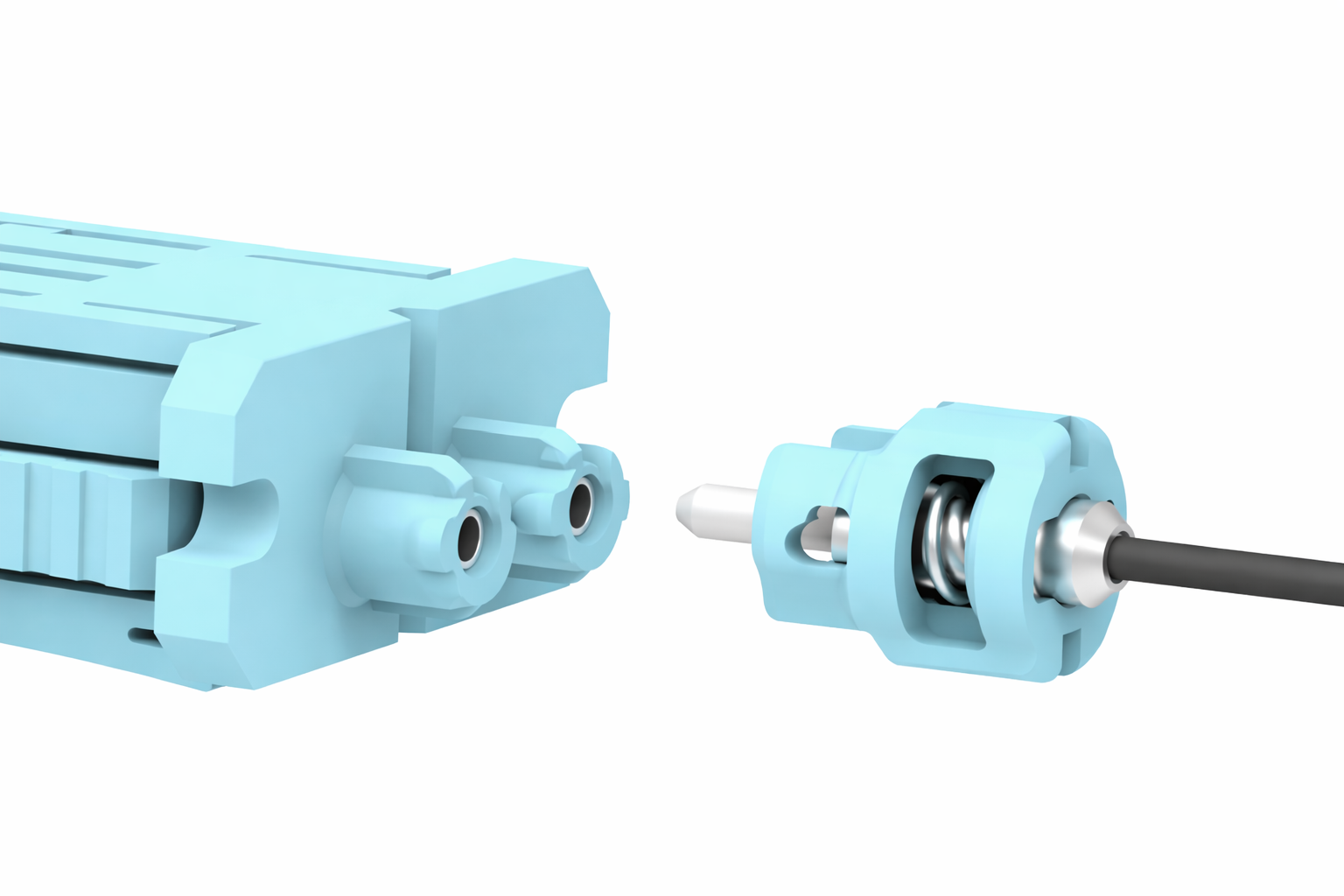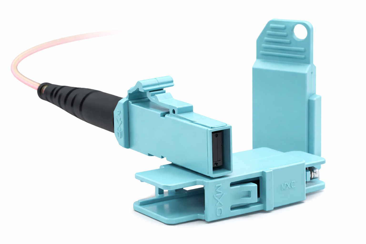 MXCコネクタは、US ConecとIntelによって共同開発された非接触型コネクタです。Expanded Beam(拡大ビーム)方式を採用することで、接続端面の汚れや摩耗による影響を最小限に抑え、メンテナンス負荷を低減しながら最大64心の安定した多心通信を実現しています。