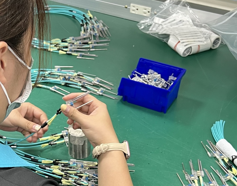 光パッチコードは、データセンターや通信インフラを支える重要な部品で、その性能は製造工程の精度に大きく左右されます。本記事では、単心コネクタまたはMPO(多心)コネクタ付きの光パッチコードを想定したアセンブリ工程を工程順に解説します。アセンブリ工程とは、光ファイバケーブルにコネクタを取り付け、規定の光学性能を満たす製品として完成させる一連の製造工程を指します。主な工程は以下の通りです。