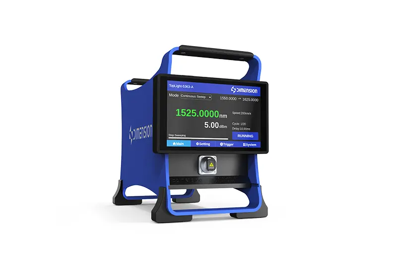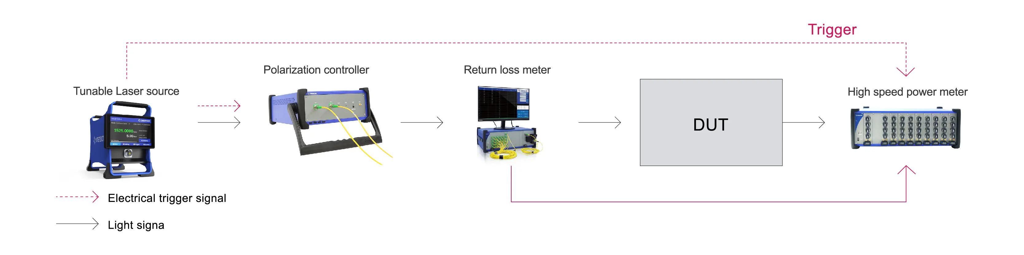 Dimension Technologyが独自に開発した波長スキャニングシステムに対応しています。TopLight可変光源と高速光パワーメータを組み合わせることで、波長精度 ±5 pm と最大 100 nm/s のスキャン速度を達成します。IL、WDL、PDL、RL、リップル、クロストークなどのパラメータを効率的に評価することができます。