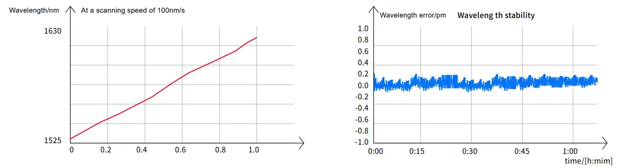 可変波長スキャン中にモードホッピングが発生しないように設計されています。全波長範囲で連続的かつ均一な波長カーブを実現し、常に主モードの波長を出力するため、波長校正用部品を追加しなくても測定を行うことができます。