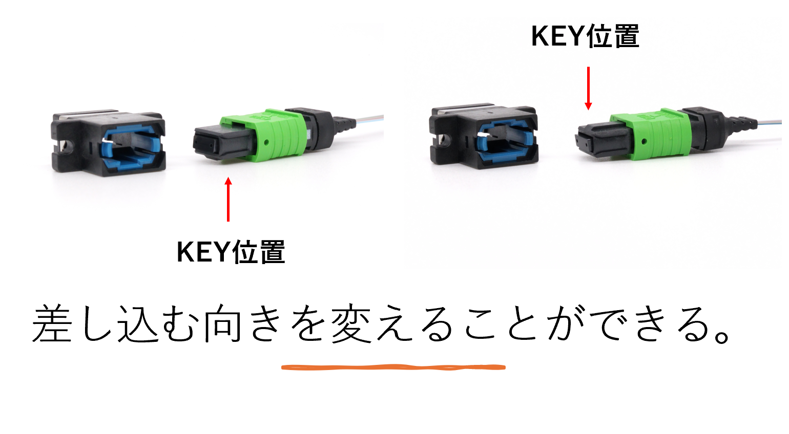 ※3:キーを入れ替えることで、Type A(UP-DOWN)とType B(UP-UP)どちらの接続方法も対応可能です。(TypeBの場合は、「APC研磨」では使用できません。)