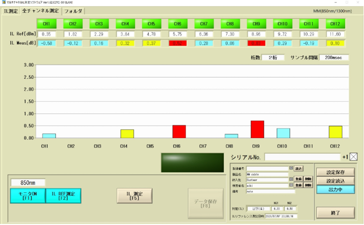 作業者は、全チャンネルのIL状態を確認しながら調心やIL値の決定が行えます。